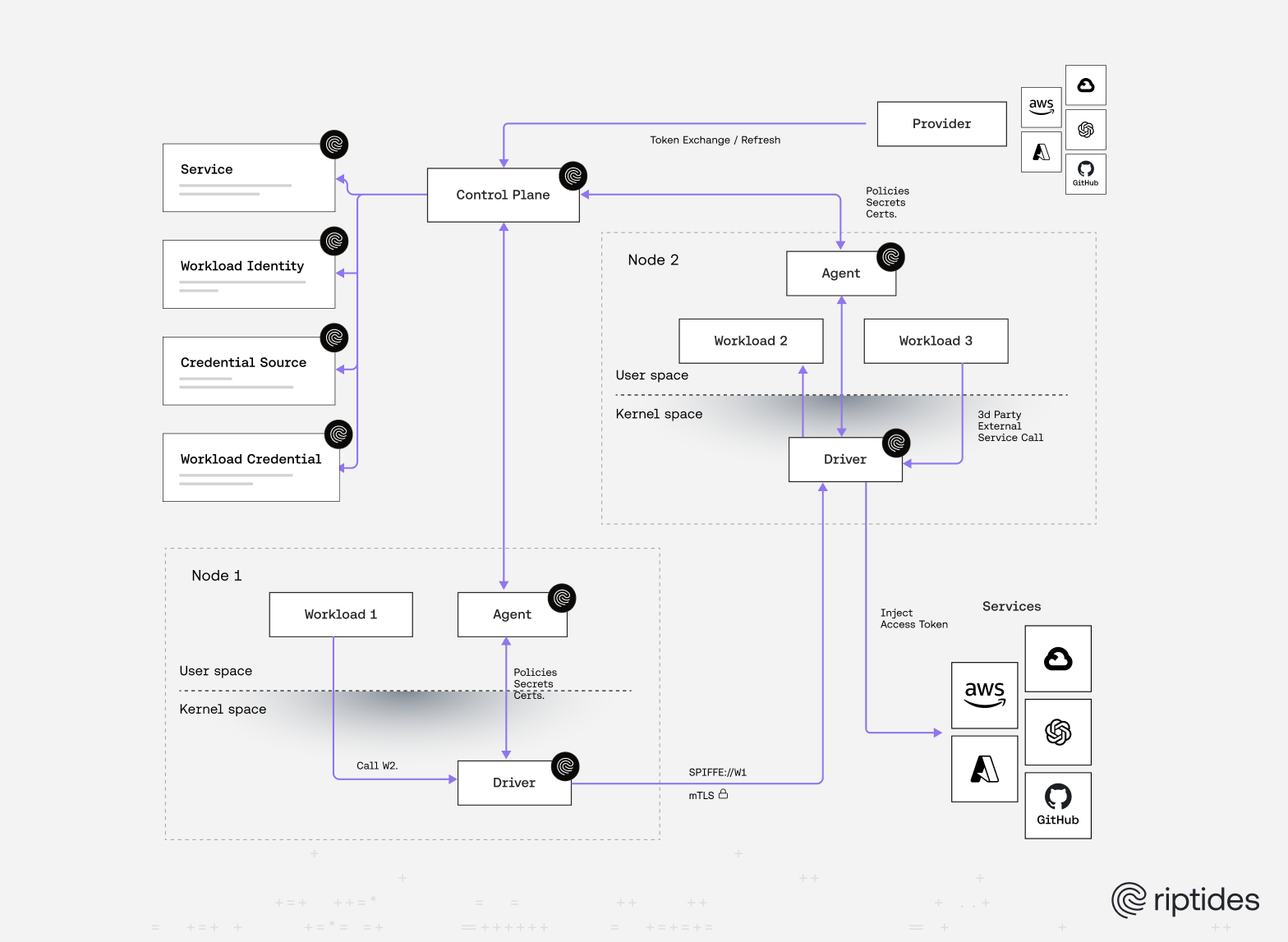 Static secrets are a liability and credentials are breached every day. With SPIFFE as the foundation, workload identity without stored secrets delivers cryptographic, ephemeral trust for the post-credential era. Riptides takes this further with kernel-native enforcement, making identity automatic, process-bound, and truly seamless.